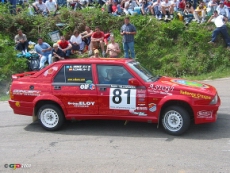 de Canel con un coche poco visto en rallyes, un Alfa 75 |