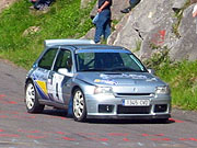 El piloto del Clio Maxi no dio opción a los Mitsus de Doce y Félix García, imponiéndose en los seis tramos camino de una muy convincente victoria, con más de minuto y medio de ventaja sobre el piloto gallego. |