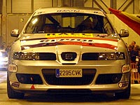 Sergio López-Fombona, con Salvador Belzunces a su derecha, tomaba la salida con uno de los Seat León de Baporo y cuajaba un excelente rallye, siempre segundo tras el inalcanzable Rueda pero manteniendo a raya a los demás EVOs, hasta que una ligera salida de carretera en el tramo 8 le retrasaba justo cuando Rueda empezaba a tener problemas lo que le hubiese dejado el triunfo en bandeja. De todas formas, lo principal para Sergio y Baporo era probar el coche que todavía es inferior a los Mitsus cuando la tracción es más necesaria, en zonas sucias. Por contra, en velocidad, poco tiene que envidiar a ningún rival, con puntas de 220 kim/h según nos comentaba su piloto. |