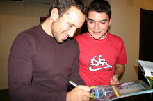 Sergio Fombona firmando autógrafos a los aficionados al acabar la presentación |