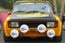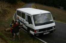 Como cada año César atendió el bar-tienda y condujo su peculiar furgón-taxi-coche de prensa