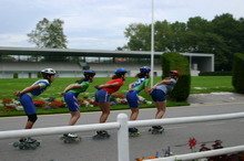 ...aunque a las patinadoras los coches no les impiden rodar ¡A que te cojo el rebufo!