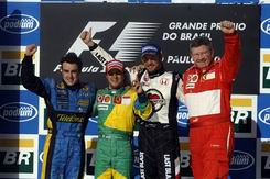 Alonso, Massa, Button, Brown, todos contentos en el último podio del año