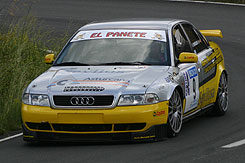 El del Panete se hacía pronto con el control del A4 y el sábado se quedaba a sólo 50 milésimas de Xavi Riera, subiendose al podio ya el domingo. Raúl se mostraba encantado con el Audi al que describía como "un coche no para correr sino para marcar tiempos". Y es que la eficacia de la tracción quattro hace que las sensaciones al volante del Audi sean, tal vez, menos intensas que con un tracción trasera ...¡pero los tiempos salen y de que forma! |