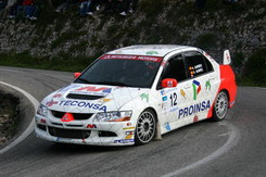 El popular "Bola" volvía a ocpuar el asiento de la derecha del Mitsubishi grupo N de Antonio Garrido. En esta ocasión se trataba de un EVO9 que daba innumerables problemas a lo largo de todo el rallye, retrasando mucho al equipo de Teconsa aunque, dada la escasa participación tanto en el grupo N como en la nueva EVO Cup, simplemente terminando sumaban unos interesantes puntos en ambas categorías. |