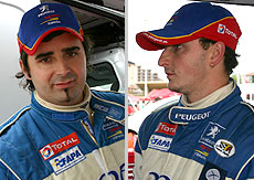 Raúl Iván Alvarez y Angel Odón también optaban al podio entre los Peugeot cuando la mecánica les traicionó. Primero un amortiguador roto, que les mandó a la cuneta doblando el puente trasero, luego una penalización de 30" para poder reparar la avería y, finalmente, problemas de frenos y dirección, hacían que acabar sextos fuese todo un éxito. |