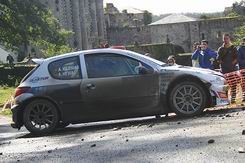 Los hermanos Arias acababan su rallye impactando contra el 206 de Raúl Iván, accidentado momentos antes en la especial de As Somozas-Moeche. En ese momento, Miguel y Roberto eran sextos tras haber perdido tiempo por una ligera salida en Monfero en la que doblaron un trapecio. |