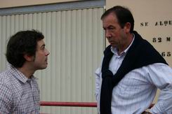 Rafa Guardiola escucha atentamente los consejos del maestro mayor formulero "Monchu" |