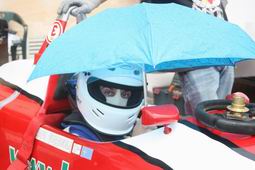 ...y para estar dentro de un fórmula hasta un miniparaguas sea bien recibido con tal de protegerse |