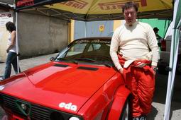 ...lo mismo que el Alfasud de Aldo, que posa orgulloso junto al coche con el que compitese su padre |