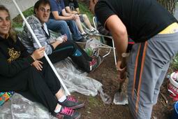 ¡Nada mejor que la azada para hacerte la tribuna a medida! |
