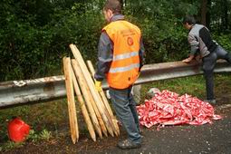 ¡Lo malo de esto de encintar es que luego hay que recoger un montón de kilómetros de plástico y postes! |