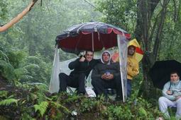 ¡Que a gusto estamos aquí, a cubierto de la lluvia! |