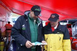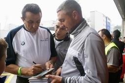 Incluso con Berti al lado en la montaña el que firma autógrafos es Roca |