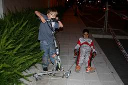 El hermano de 'cohete'y un amigo practican nuevo deporte: ¡Patinete triciclo con remolque tipo trineo de luge! |