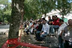 ...pero el cambio no fue malo para los españoles que montaron la suya al lado de un bar con terraza |