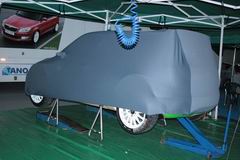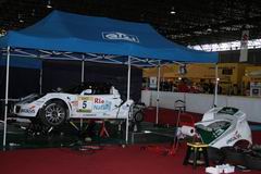 ¡Pues si que empezamos bien! Nada más llegar a Expourense nos encontramos así al Skoda de Hevia... |