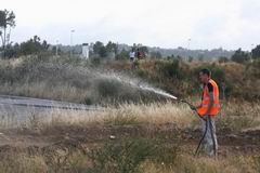 ...finalmente el único agua que cayó sobre el tramo fue la de regar la tierra para evitar el polvo... |