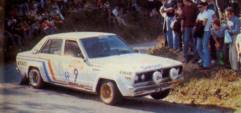 Con Ford ausente, Datsun (la otra marca que estaba siguiendo el mundial aquel año de forma más o menos continuada) apuraba sus remotas opciones de seguir optando al título acudiendo a Italia con uno de sus robustos 160J para el siempre eficaz Timo Salonen (con Seppo Harjanne a la derecha). Sobre la velocidad del finlandés en cualquier terreno y la resistencia del coche japonés a los tramos de tierra más duros no había dudas, pero otra cosa era la competitividad del poco potente grupo 2 nipón sobre asfalto.
