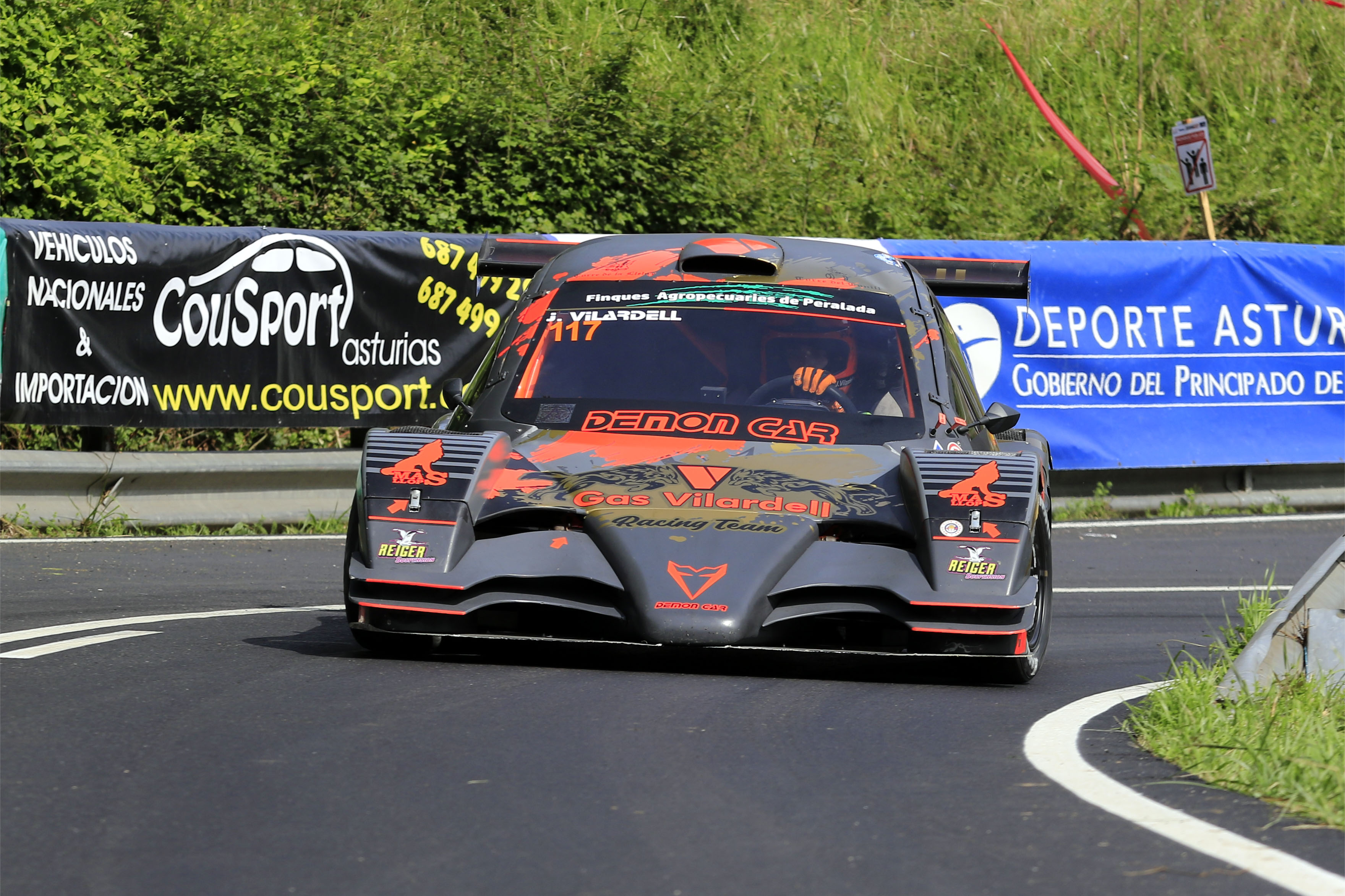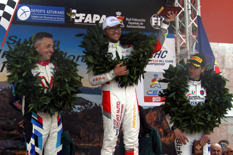 En el podio de la 'plaza del cañón' de Arriondas acompañaron al piloto local los dos que se perfilan como sus principales adversarios en la lucha por el título, Jordi Vilardell y Aitor Manso. El joven catalán, tras deslumbrar el año pasado en CM-Junior, compite esta temporada ya sin brida de admisión en el motor de su Demon Car y, con más potencia a su disposición, volvió a demostrar una vez más su rapidez y sus dotes de malabarista del volante. A nivel de espectáculo fue, sin duda, una de las atracciones de la prueba con sus apuradas de frenada a la entrada de las curvas y sus derrapadas en aceleración tras los virajes más cerrados. Y en cuanto a tiempos, fue el único capaz de batir, aunque fuese en dos mangas de entrenamientos, a Benito Pérez, y el que menos lejos del ganador se quedó en las dos oficiales que completó, las dos primeras, ya que una avería al poco de iniciar la última le impidió tratar de acercarse más al asturiano.