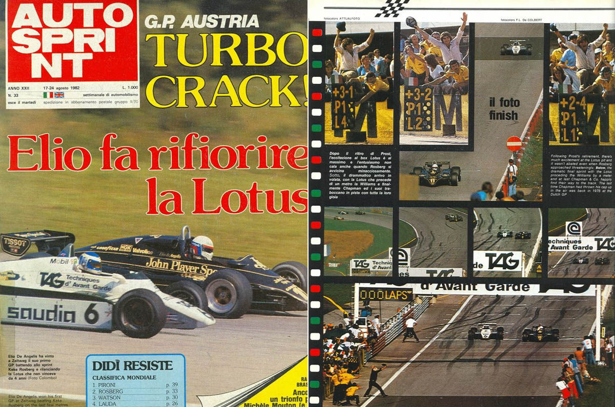 Entonces, el 15 de agosto de 1982, el espectacular triunfo de Elio De Angelis al volante del Lotus 91 tuvo además el especial significado histórico de ser el número 150 para un monoplaza equipado con el motor Ford Cosworth y el primero que consiguió el elegante piloto italiano.