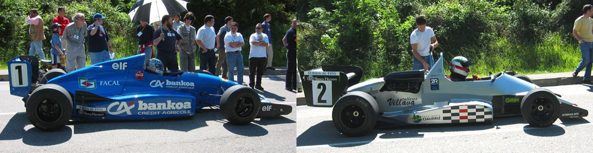 Y si las barquetas despertaban admiración, no menos causaban los fórmulas, por mucho que estuviesen condenados a competir fuera de concurso a efectos de la puntuación en los certámenes continental y nacional (para el que tampoco estaban admitidas las primeras). Siete eran los monoplazas que abrían la lista de inscritos procedentes de cuatro categorías de circuitos diferentes. El más poderoso lucía el número 1 en las derivas laterales de su alerón trasero. Era la nueva montura del ganador en las cuatro ediciones anteriores del Fito, Andrés Vilariño. Para la temporada del 2002, el guipuzcoano había cambiado la Osella PA20 con la que se había impuesto los cuatro últimos años por un poderoso Reynard de Fórmula 3000 que había estrenado con victoria hacía poco más de un mes en la cercana subida de Pravia, cita inaugural del campeonato regional asturiano. Un campeonato cuya segunda prueba, la clásica subida de Muncó, celebrada bajo el típico ‘orbayu’ de la zona un par de semanas antes, había terminado también con victoria para un ‘fórmula’ presente en el Fito, el Martini F2 del eterno rival de Vilariño en tantas campañas del europeo y del nacional en los años 90, Pantxo Egozkue.
