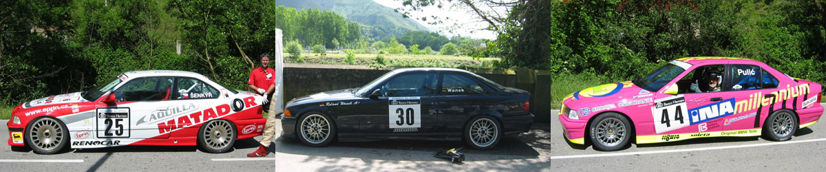 El grueso de participantes foráneos se iba a enfrentar a las rampas del Fito a bordo de vehículos carrozados incluidos en la categoría 1 del Campeonato de Europa. La mayoría venían del este del continente y pilotaban diferentes modelos de la marca alemana BMW. En total eran siete los coches del fabricante bávaro llegados de más allá de los Pirineos. Entre ellos estaba el potente M3 de grupo A del checo Robert Senkyr, con su publicidad de neumáticos fabricados en su país pero nombre de reminiscencias muy españolas: Matador. Todo un contraste con la discreta versión grupo N del germano Roland Wanek, sin logotipo alguno sobre su oscura carrocería, que pasaba aún más desapercibida ante el brillante fucsia que hacía destacar el 320 en especificaciones SP del croata Niko Pulic, campeón continental en carrozados las tres temporadas anteriores.