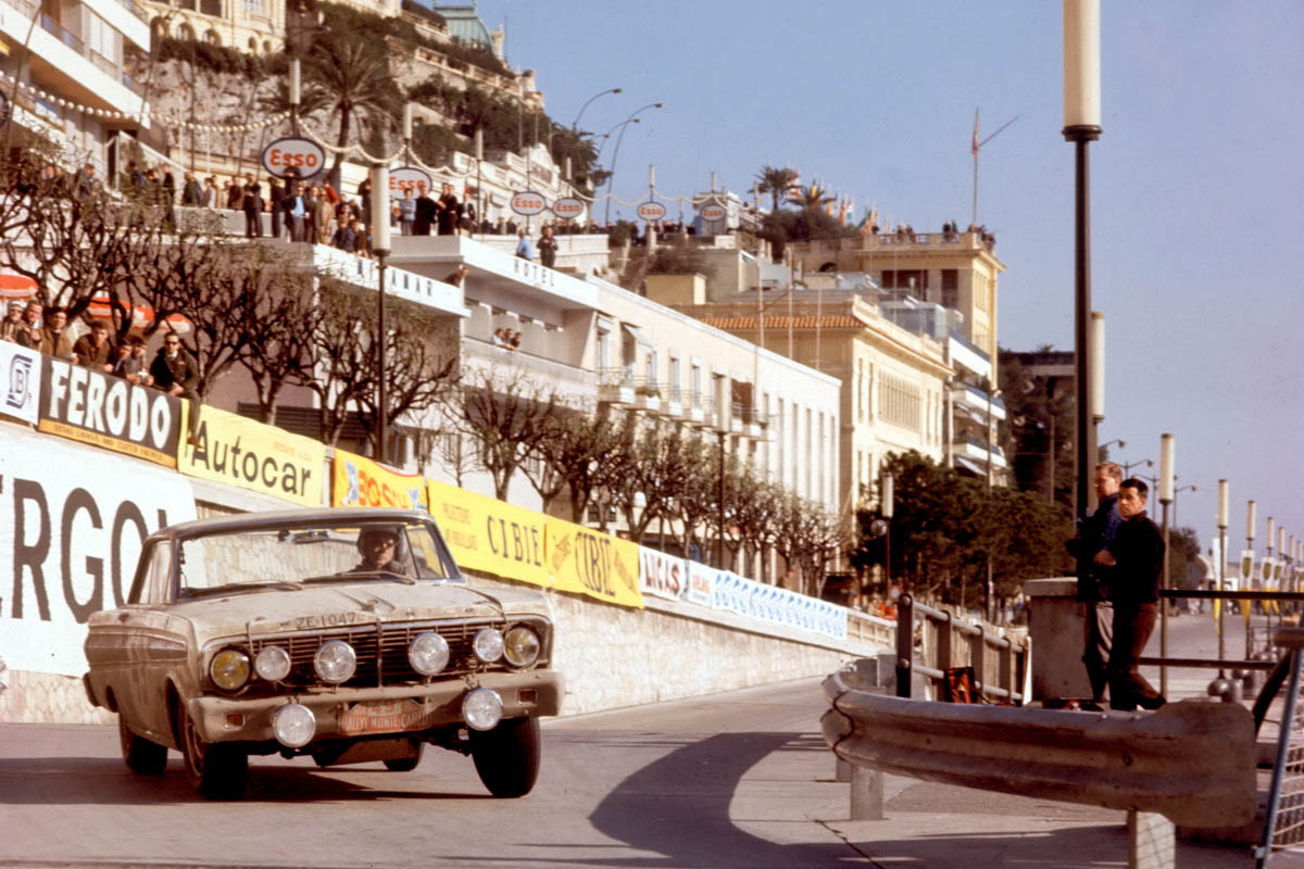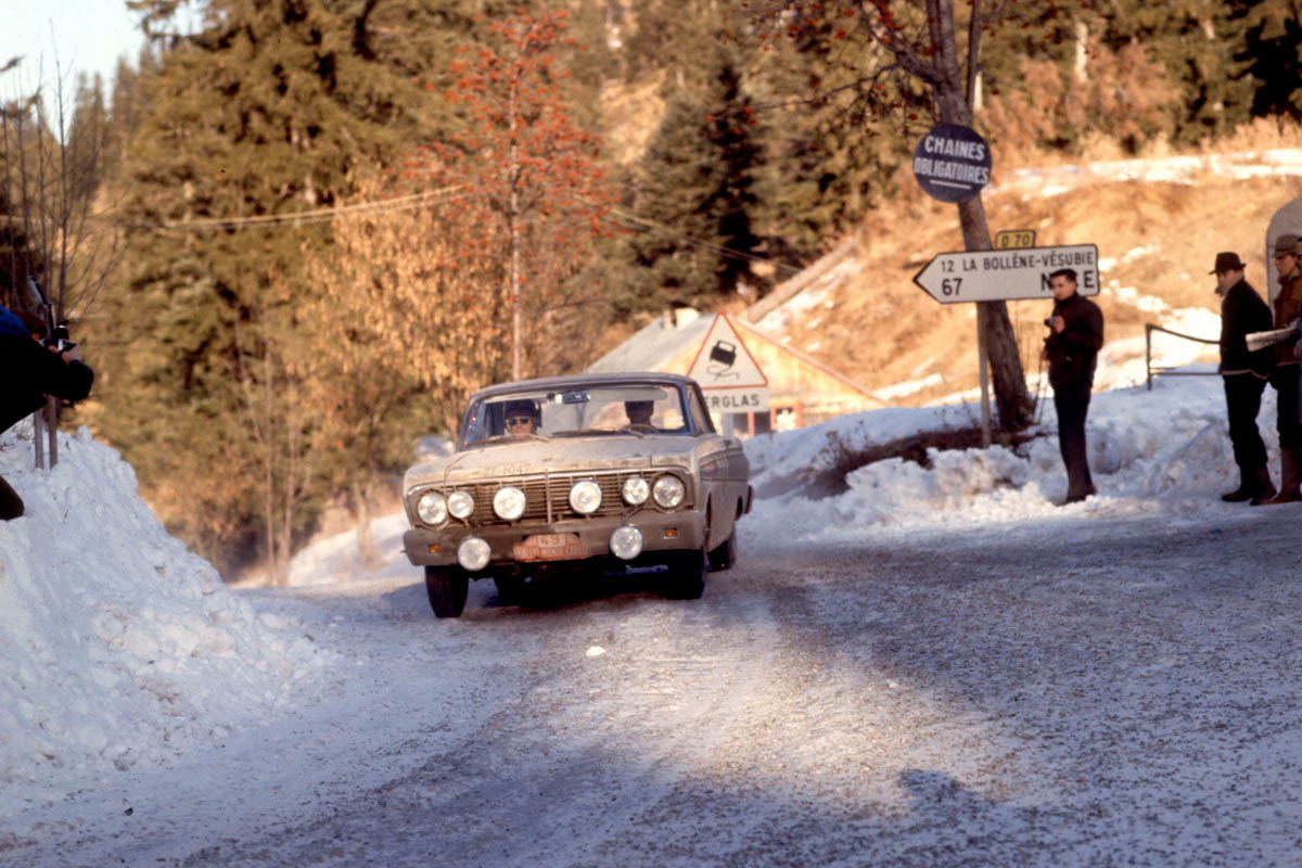 En la edición del 1964 del rallye de Monte-Carlo, un buen número de fabricantes acudieron con potentes formaciones en busca del ansiado triunfo que incrementara las ventas de sus modelos. Los estadounidenses de Ford desembarcaron en Europa con un formidable despliegue compuesto por nada menos que ocho de sus aparatosos Falcon con motor V8 de 4,7 litros de cilindrada y cerca de 300 caballos de potencia. Entre sus pilotos el más famoso era el británico Graham Hill, campeón del mundo de Fórmula 1 dos años antes, y el más rápido era el sueco 'Bo' Ljungfeldt, todo un maestro a la hora de controlar el pesado 'sedán' sobre asfalto deslizante.